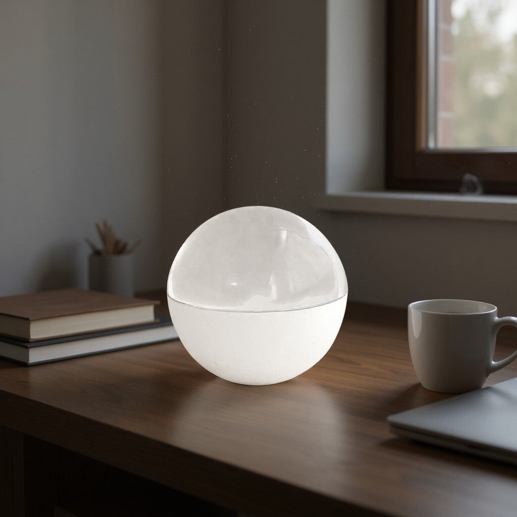 The glass-ball design blends futuristic tech with elegant décor. Compact yet powerful, it elevates any environment—making it as much a design piece as it is a display.